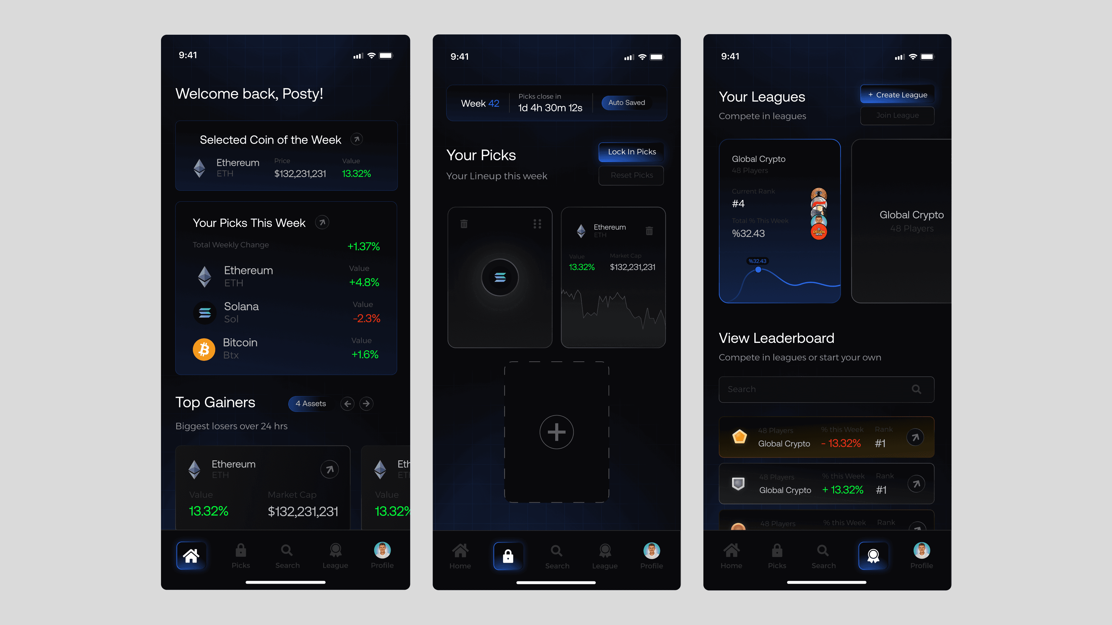 Crypto Fantasy League - Mobile App Screens